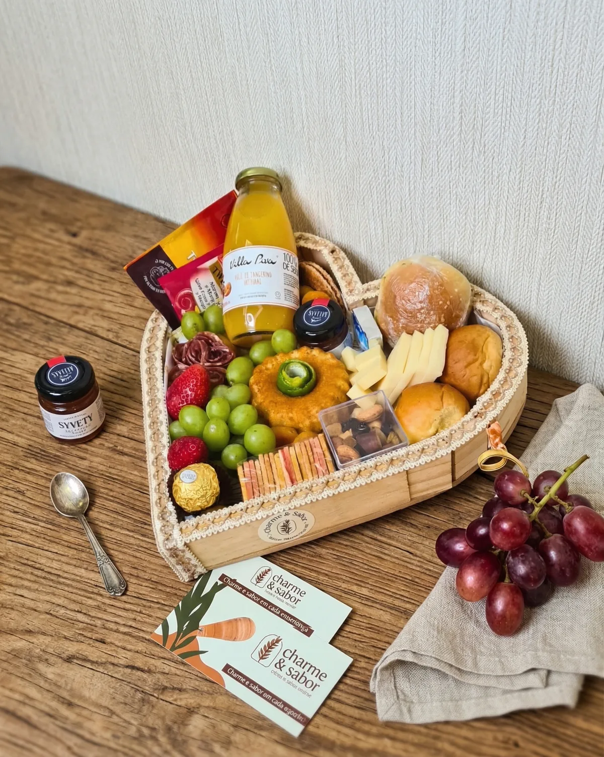Suco especial, mini bolo, frutas selecionadas e itens de cuidado. Para quem merece sentir carinho de verdade.